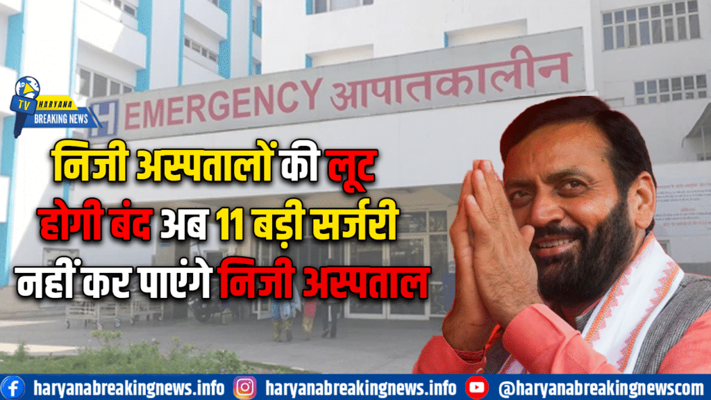 हरियाणा सरकार ने स्वास्थ्य सेवाओं को लेकर बड़ा कदम उठाया है। अब राज्य की 11 प्रमुख सर्जिकल प्रक्रियाएँ केवल सरकारी अस्पतालों में की जाएंगी। यह नियम विशेष रूप से उन मरीजों के लिए लागू होगा जो Ayushman Bharat (AB-PMJAY) और Chirayu Health Scheme जैसी राज्य-केंद्रित योजनाओं के अंतर्गत इलाज करवाते हैं।